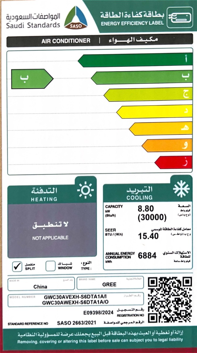 مكيف جريAI PLUS جدارى30000 بارد انفرترGWC30AVEXF-S6DTA1H/I/O