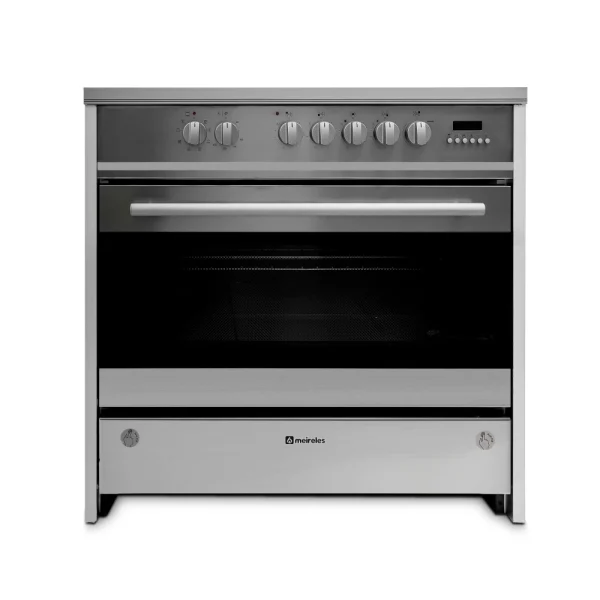 فرن ميريلس سيراميك قائم بذاته, ويل غاز، 90 * 60 سم، 5 شعلة كهرباء، 116 لتر, برتغالي، أمان، استيل – ECW 95 SS